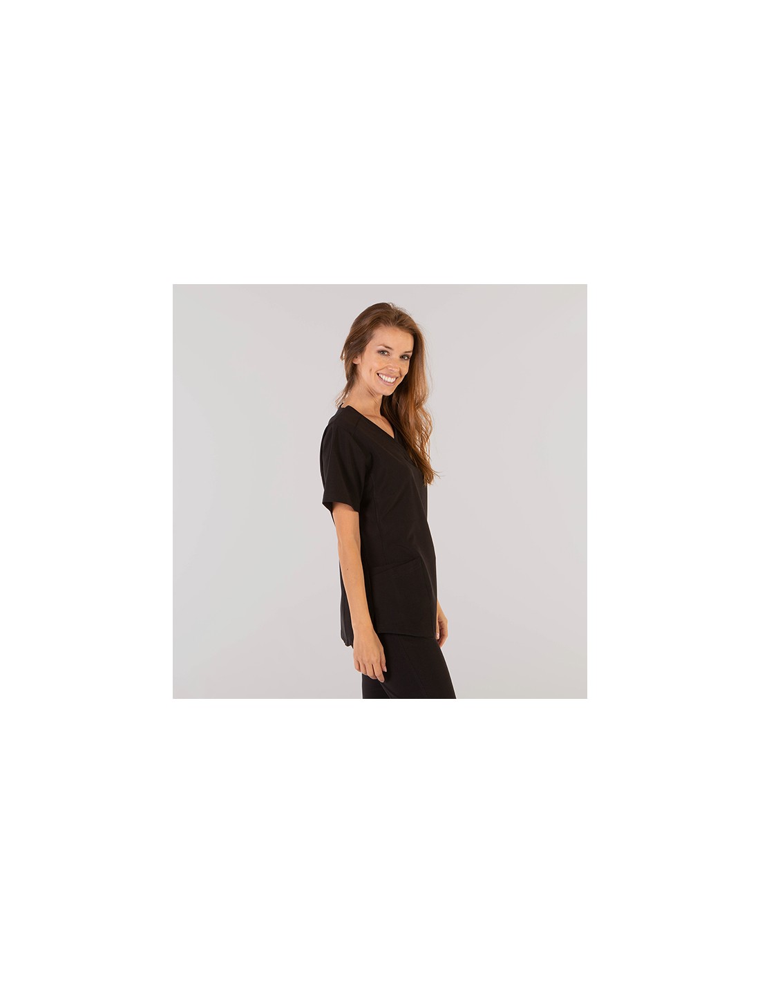 Su propiedad elástica 360 le permite estirar en todos los sentidos, aportando una mayor comodidad y libertad de movimiento. Ideal como uniforme para enfermería, doctores y demás profesionales sanitarios en hospitales, clínicas y centros médicos, farmacia, veterinario, estética, spa o comercio. Disponible también el modelo para hombre referencia 617500.