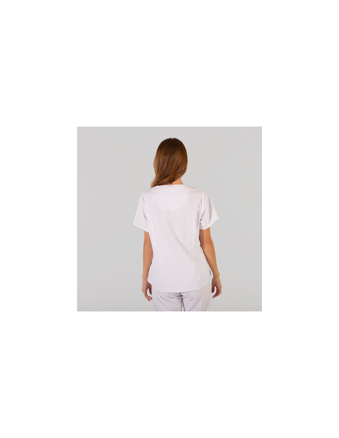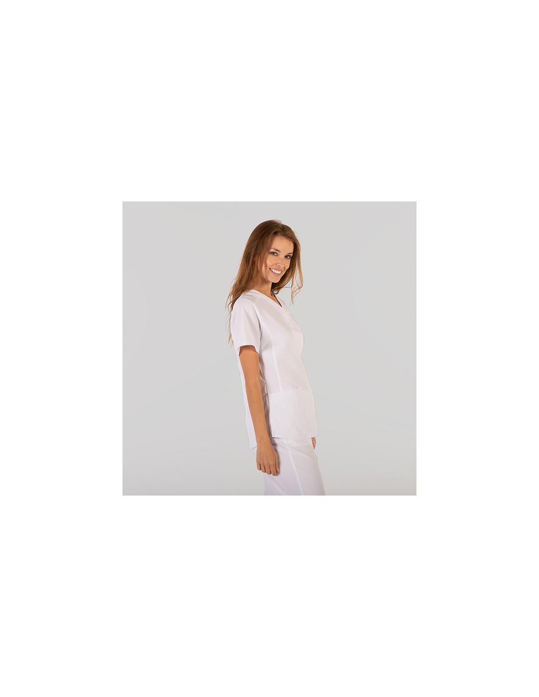 Su propiedad elástica 360 le permite estirar en todos los sentidos, aportando una mayor comodidad y libertad de movimiento. Ideal como uniforme para enfermería, doctores y demás profesionales sanitarios en hospitales, clínicas y centros médicos, farmacia, veterinario, estética, spa o comercio. Disponible también el modelo para hombre referencia 617500.
