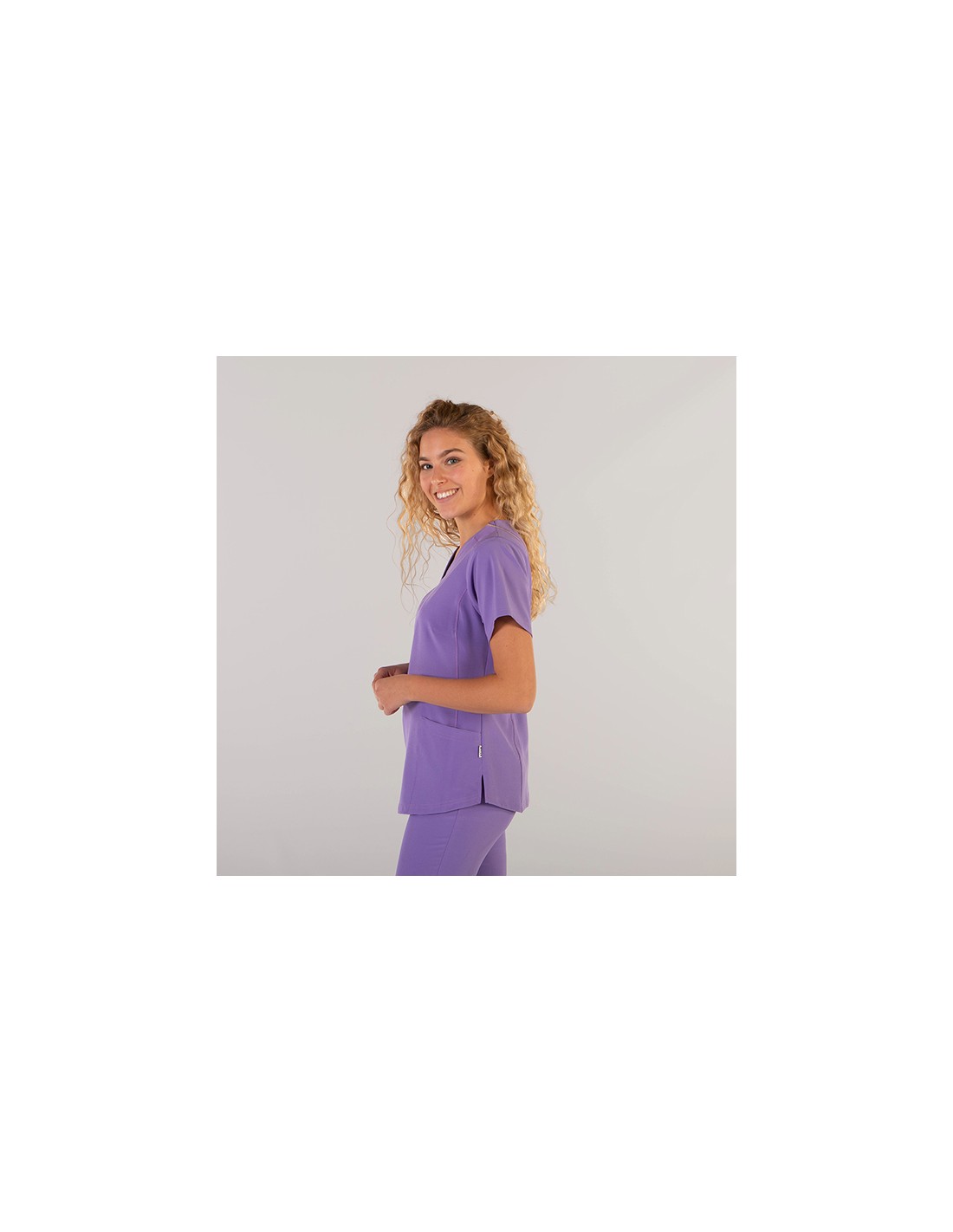 Su propiedad elástica 360 le permite estirar en todos los sentidos, aportando una mayor comodidad y libertad de movimiento. Ideal como uniforme para enfermería, doctores y demás profesionales sanitarios en hospitales, clínicas y centros médicos, farmacia, veterinario, estética, spa o comercio. Disponible también el modelo para hombre referencia 617500.