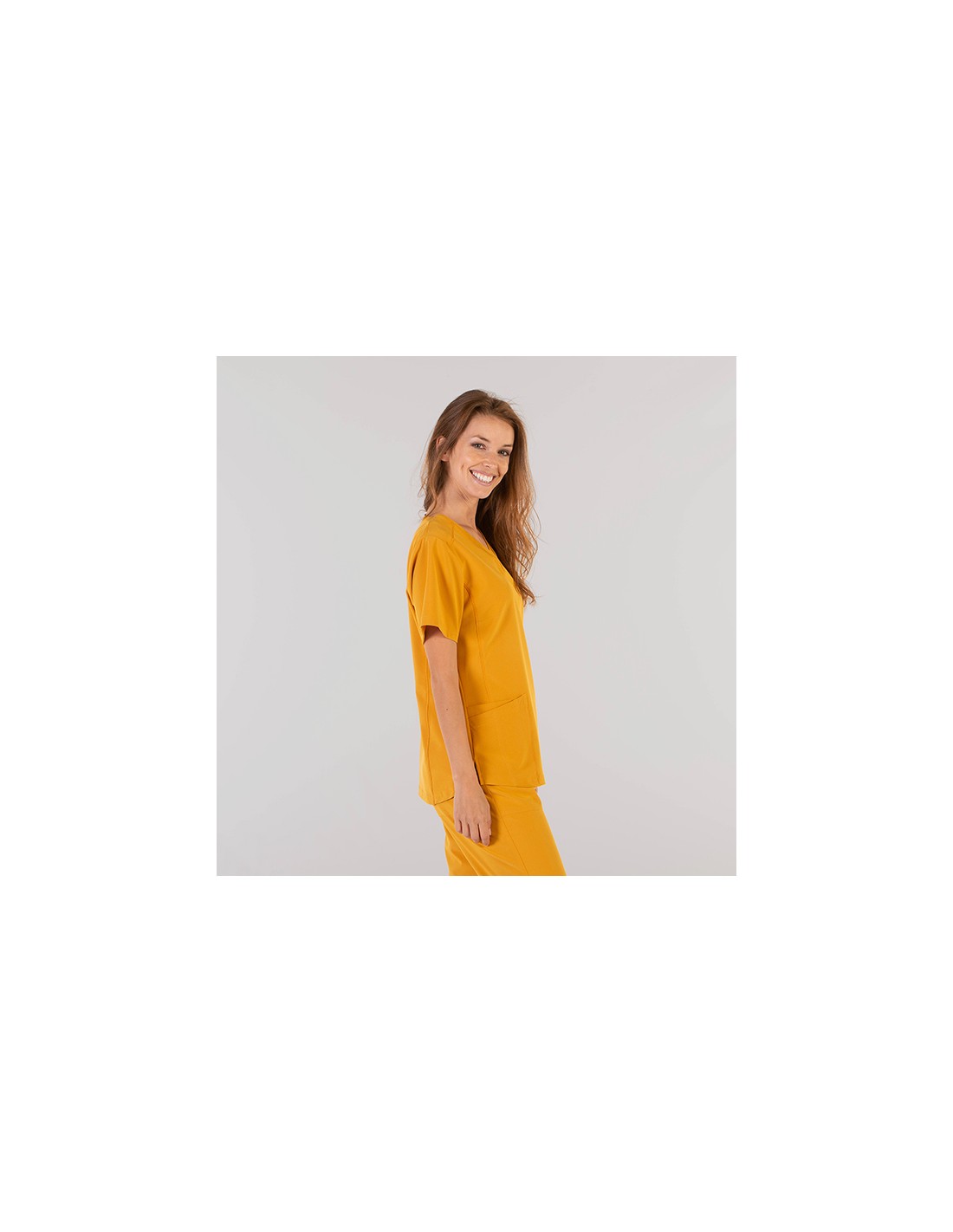 Su propiedad elástica 360 le permite estirar en todos los sentidos, aportando una mayor comodidad y libertad de movimiento. Ideal como uniforme para enfermería, doctores y demás profesionales sanitarios en hospitales, clínicas y centros médicos, farmacia, veterinario, estética, spa o comercio. Disponible también el modelo para hombre referencia 617500.