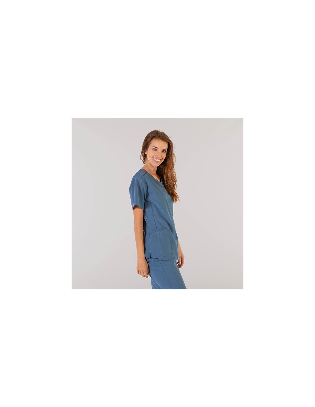 Su propiedad elástica 360 le permite estirar en todos los sentidos, aportando una mayor comodidad y libertad de movimiento. Ideal como uniforme para enfermería, doctores y demás profesionales sanitarios en hospitales, clínicas y centros médicos, farmacia, veterinario, estética, spa o comercio. Disponible también el modelo para hombre referencia 617500.