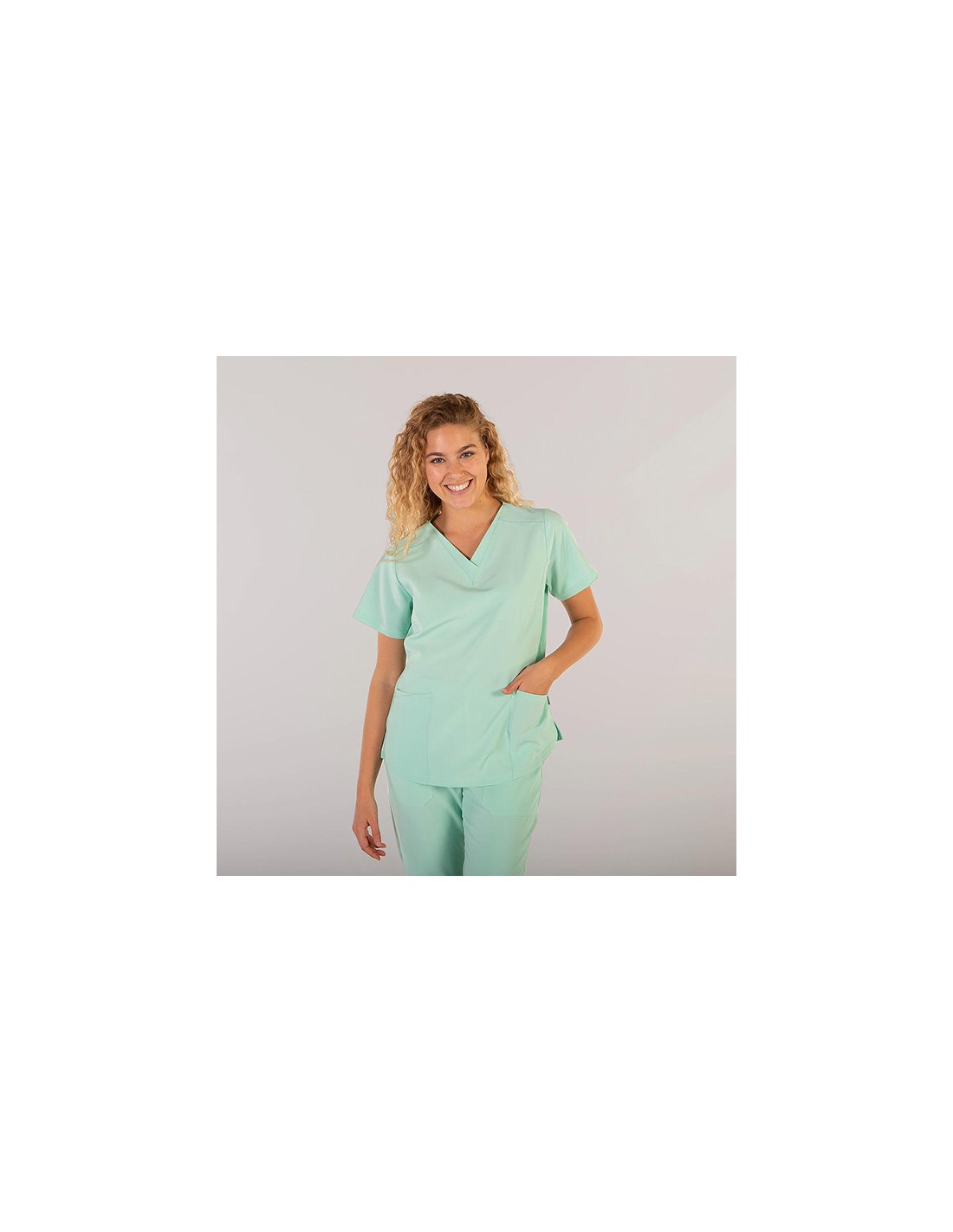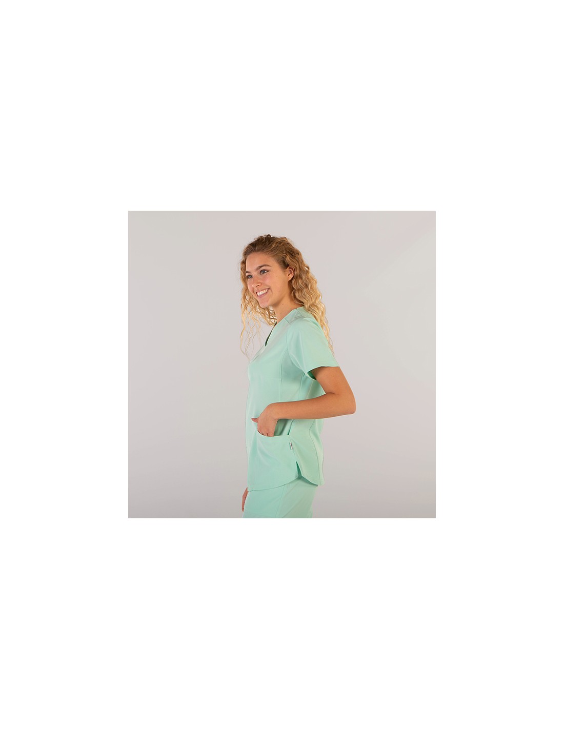 Su propiedad elástica 360 le permite estirar en todos los sentidos, aportando una mayor comodidad y libertad de movimiento. Ideal como uniforme para enfermería, doctores y demás profesionales sanitarios en hospitales, clínicas y centros médicos, farmacia, veterinario, estética, spa o comercio. Disponible también el modelo para hombre referencia 617500.