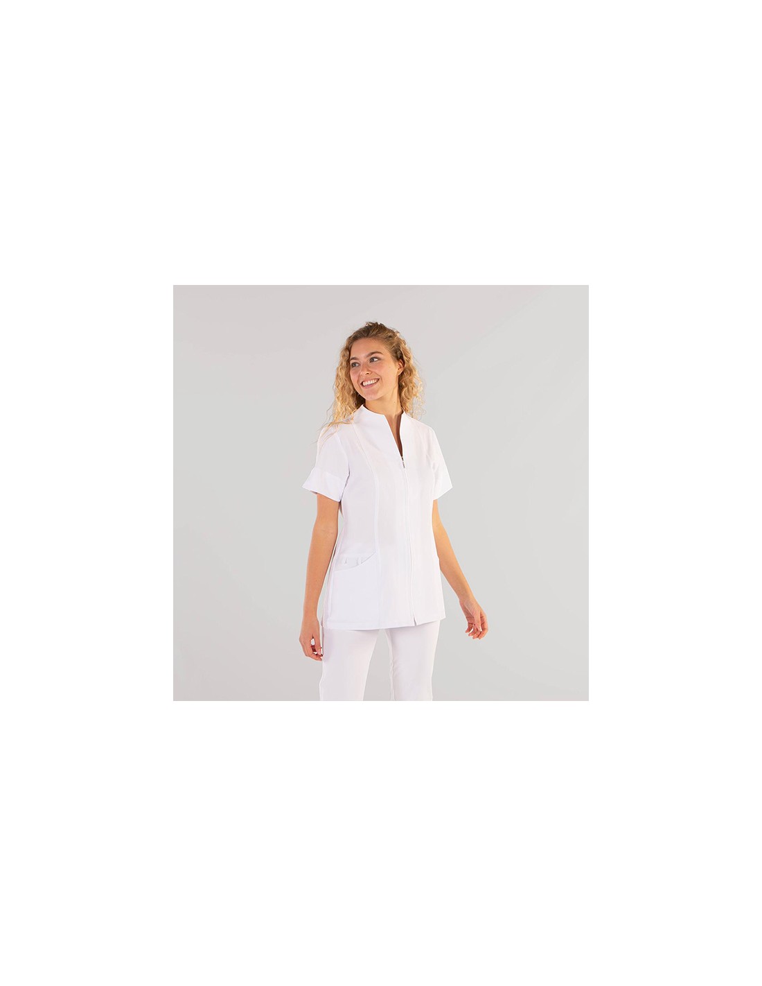 Casaca para mujer en manga corta con aberturas, con cuello chimenea, cierre mediante cremallera central y dos bolsillos en costadillos. Prenda semi ajustada, con costadillos en delantero y pinzas en la espalda. Confeccionada en MICROFIBRA 360 (95% Poliéster - 5% Elastano). Un tejido REVOLUCIONARIO con tratamiento antibacteriano SILVADUR, incorporando iones de plata que aportan protección y frescura. Absorbe y mantiene alejado el sudor de la piel, facilitando la transpiración. Su propiedad elástica 360 le permite estirar en todos los sentidos, aportando una mayor comodidad y libertad de movimiento. Disponible en varios colores actuales como coral o albero, es ideal para uniforme de enfermería, doctores y demás profesionales sanitarios en hospitales, clínicas y centros médicos, farmacia, veterinario, estética, spa, limpieza o comercio.