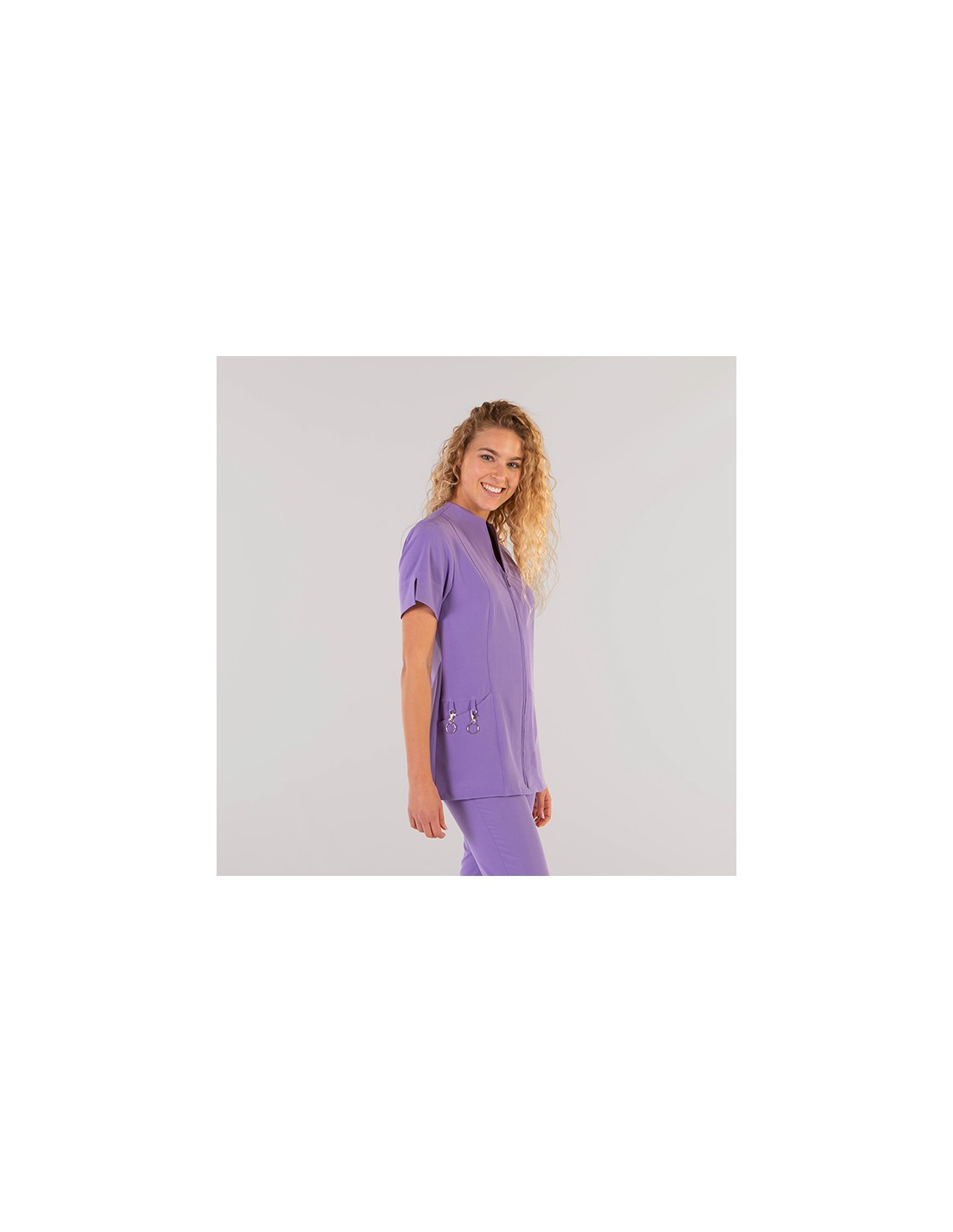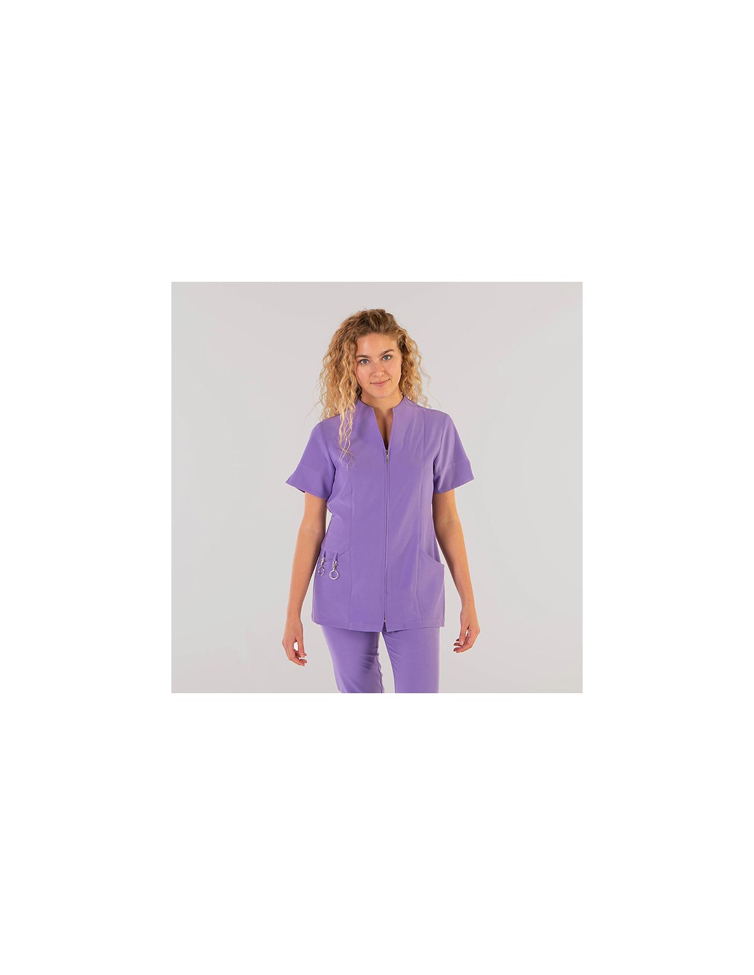 Casaca para mujer en manga corta con aberturas, con cuello chimenea, cierre mediante cremallera central y dos bolsillos en costadillos. Prenda semi ajustada, con costadillos en delantero y pinzas en la espalda. Confeccionada en MICROFIBRA 360 (95% Poliéster - 5% Elastano). Un tejido REVOLUCIONARIO con tratamiento antibacteriano SILVADUR, incorporando iones de plata que aportan protección y frescura. Absorbe y mantiene alejado el sudor de la piel, facilitando la transpiración. Su propiedad elástica 360 le permite estirar en todos los sentidos, aportando una mayor comodidad y libertad de movimiento. Disponible en varios colores actuales como coral o albero, es ideal para uniforme de enfermería, doctores y demás profesionales sanitarios en hospitales, clínicas y centros médicos, farmacia, veterinario, estética, spa, limpieza o comercio.