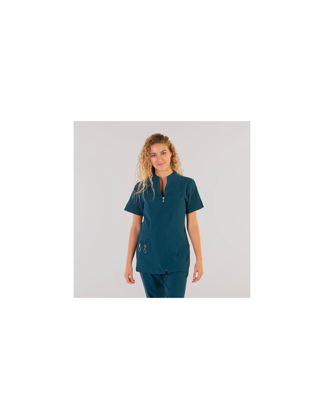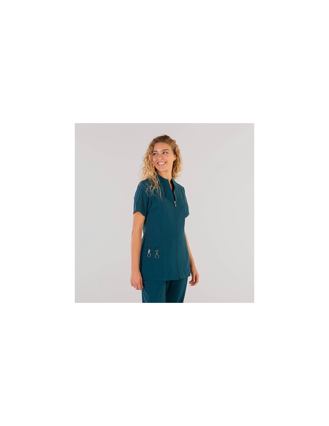 Casaca para mujer en manga corta con aberturas, con cuello chimenea, cierre mediante cremallera central y dos bolsillos en costadillos. Prenda semi ajustada, con costadillos en delantero y pinzas en la espalda. Confeccionada en MICROFIBRA 360 (95% Poliéster - 5% Elastano). Un tejido REVOLUCIONARIO con tratamiento antibacteriano SILVADUR, incorporando iones de plata que aportan protección y frescura. Absorbe y mantiene alejado el sudor de la piel, facilitando la transpiración. Su propiedad elástica 360 le permite estirar en todos los sentidos, aportando una mayor comodidad y libertad de movimiento. Disponible en varios colores actuales como coral o albero, es ideal para uniforme de enfermería, doctores y demás profesionales sanitarios en hospitales, clínicas y centros médicos, farmacia, veterinario, estética, spa, limpieza o comercio.