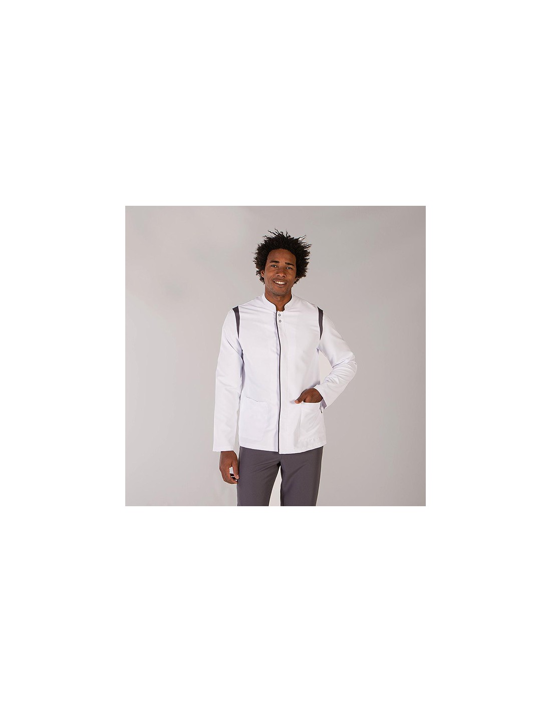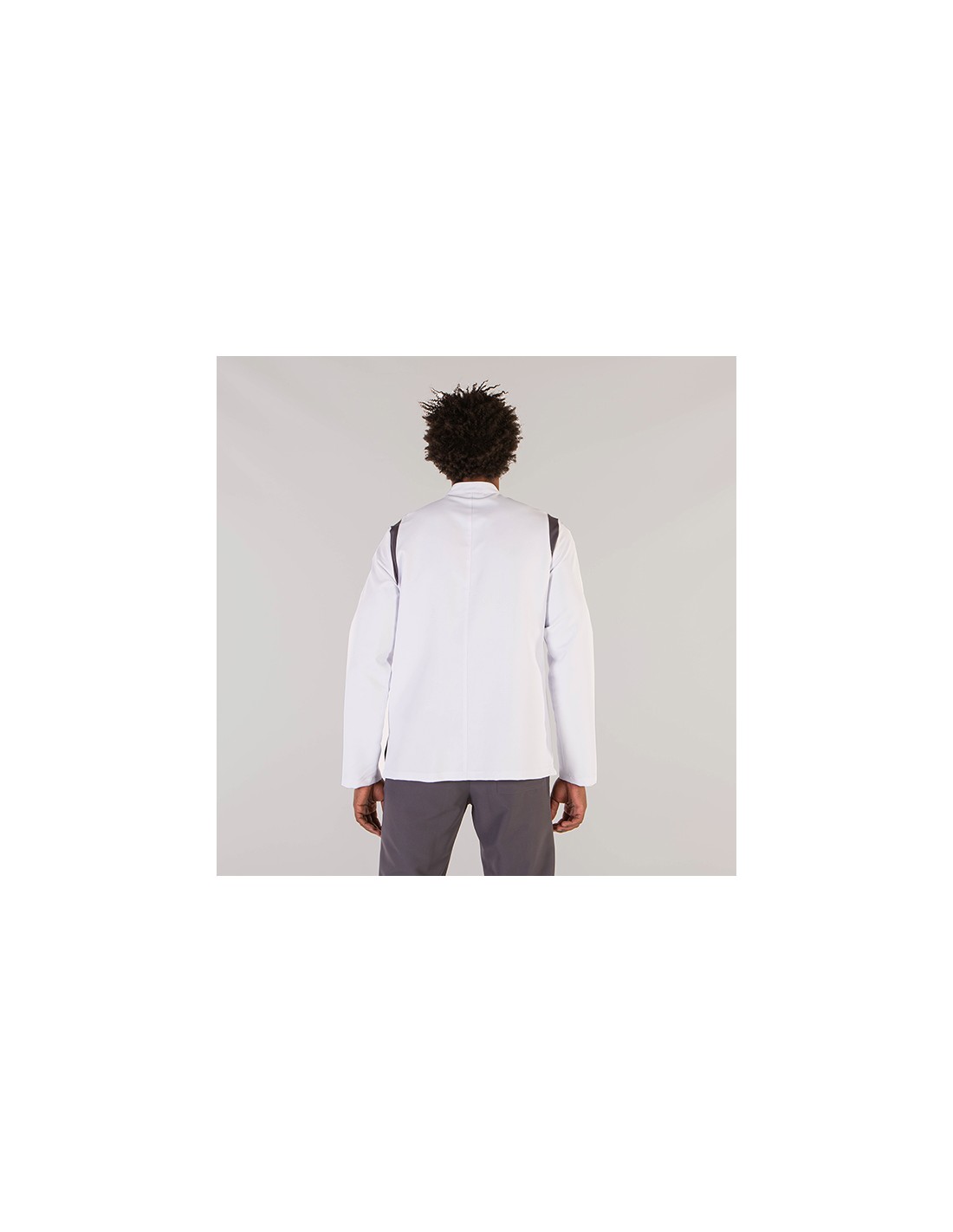 Casaca para hombre en manga larga, con cuello mao, dos bolsillos delanteros y cierre mediante botones de presión ocultos.